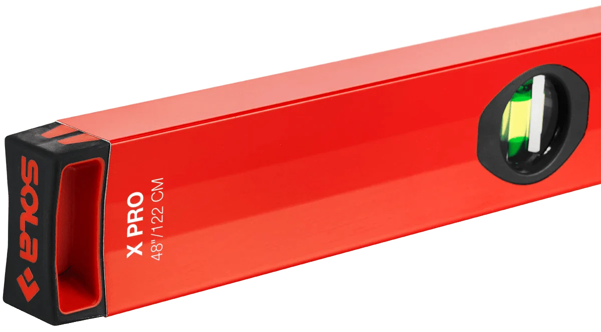 Transform your measurement accuracy with the SOLA X PRO Box Beam Tub and Surround Level Set. Engineered for professionals, this set, featuring 59" and 32" levels, blends robust strength with unparalleled precision. Its ergonomic aluminum profile and shock-absorbing end caps ensure durability and stability, while the innovative FOCUS vials with 60% magnification offer superior visibility in any lighting condition. Austrian craftsmanship ensures accuracy to ≤0.5 mm/m, making the SOLA X PRO set a pivotal tool for achieving flawless results in every project.