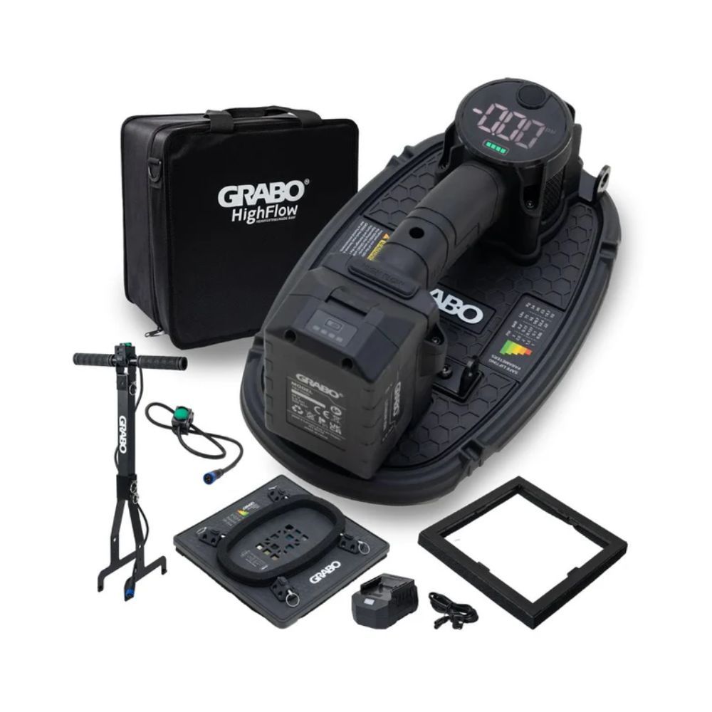 Where GRABO leaves off, the HIGH FLOW picks up. This is the most powerful tool we’ve created. With a vacuum flow rate of 1.5 cubic meters per minute, never before has there been a handheld portable vacuum tool this powerful that grips the most porous materials out there. With our brilliant new pistol grip